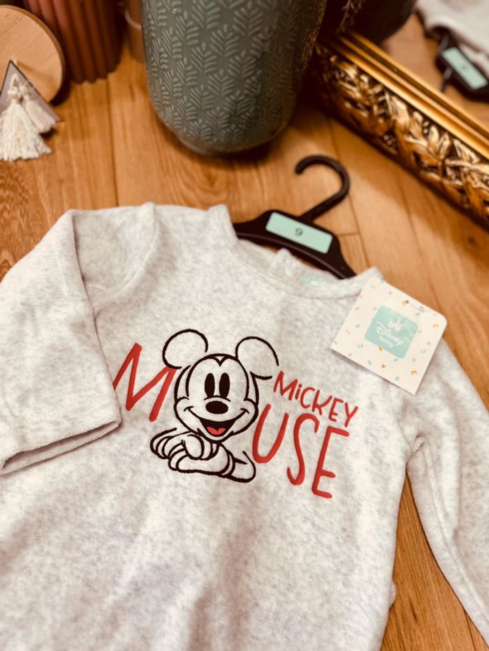 Taille 9 mois pyjama en velours garçon Disney gris clair Neuf * Mickey * 💙 - photo numéro 3