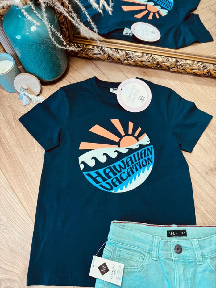 Taille 7-8 ans ensemble 2 pièces été garçon TAO TEx bleu marine et vert * soleil * 💚