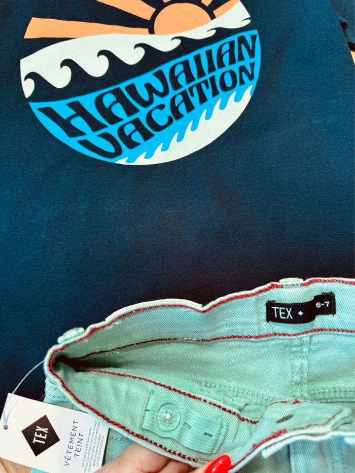 Taille 7-8 ans ensemble 2 pièces été garçon TAO TEx bleu marine et vert * soleil * 💚 - photo numéro 2