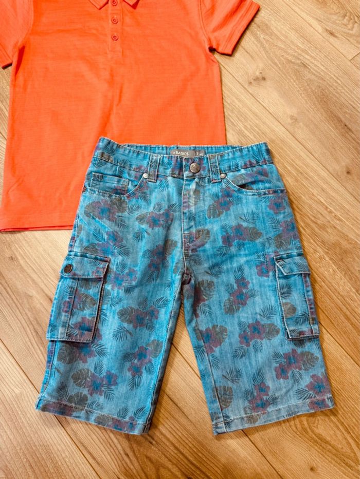 Taille 7-8 ans ensemble 2 pièces été garçon TAO Orchestra corail bleu jean * fleurs * 💚 - photo numéro 4