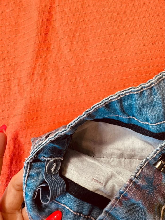 Taille 7-8 ans ensemble 2 pièces été garçon TAO Orchestra corail bleu jean * fleurs * 💚 - photo numéro 2