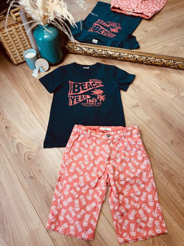 Taille 8 ans ensemble 2 pièces été garçon TAO la Halle bleu marine orange * beach * 💚 - photo numéro 1
