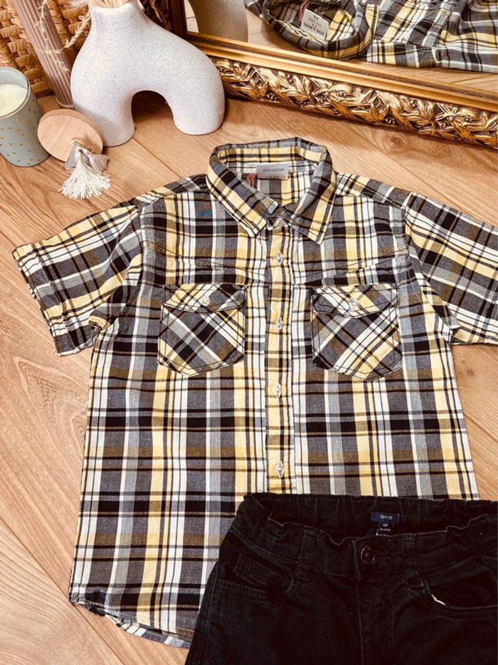 Taille 6 ans ensemble 2p été garçon kiabi jaune noir * carreaux * 💙 - photo numéro 1