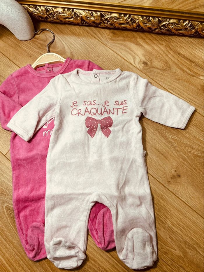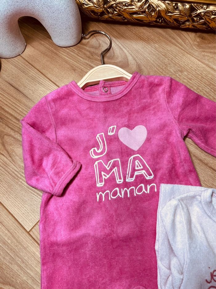 Taille 3 mois lot de 2 pyjamas velours fille bébé rêve rose * maman * 🎀 - photo numéro 2