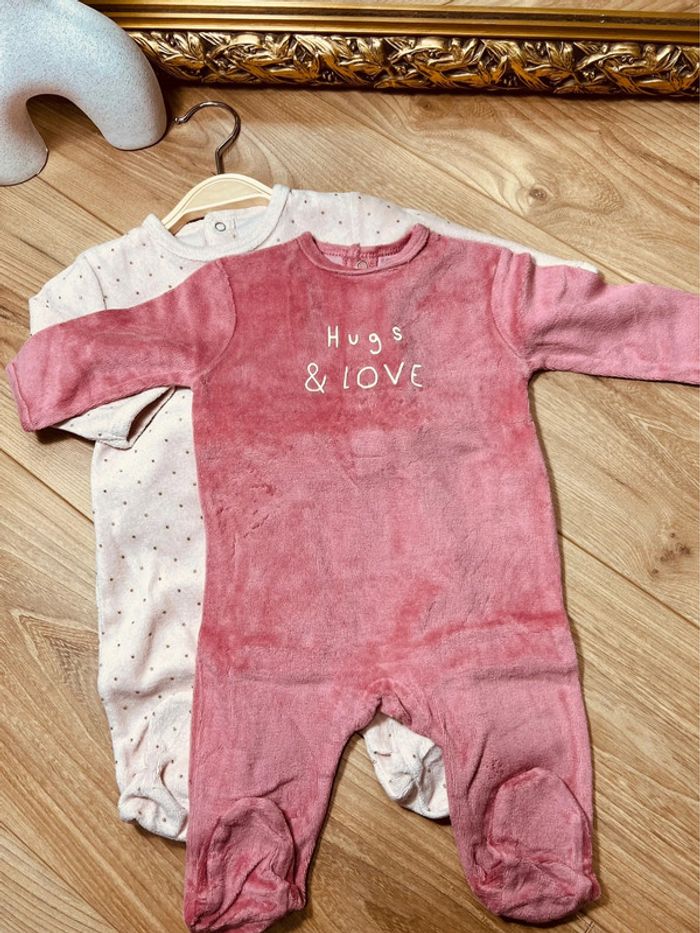 Taille 3 mois lot de 2 pyjamas velours fille Kiabi rose * love baby * 🎀 - photo numéro 1