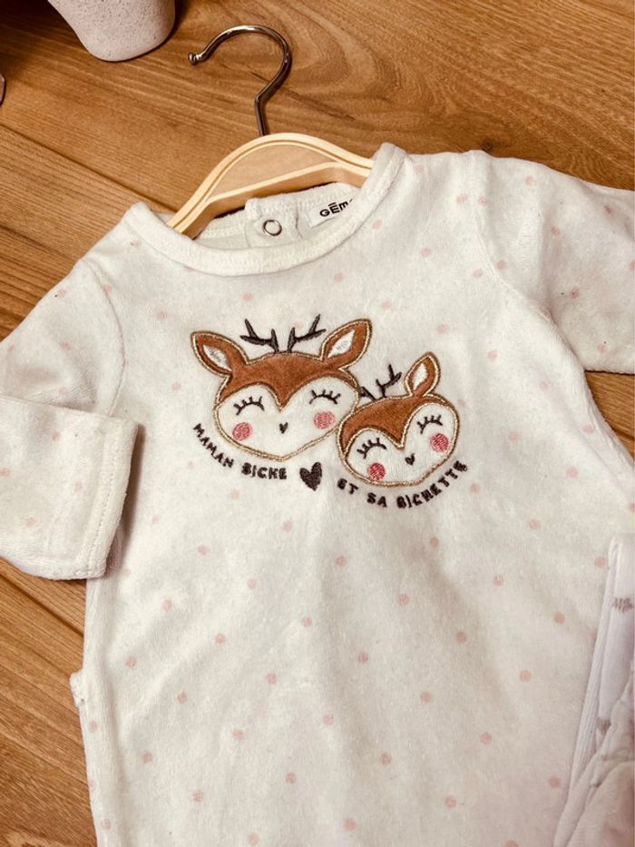 Taille 3 mois lot de 2 pyjamas velours fille Gemo blanc * biche étoile * 🎀 - photo numéro 3