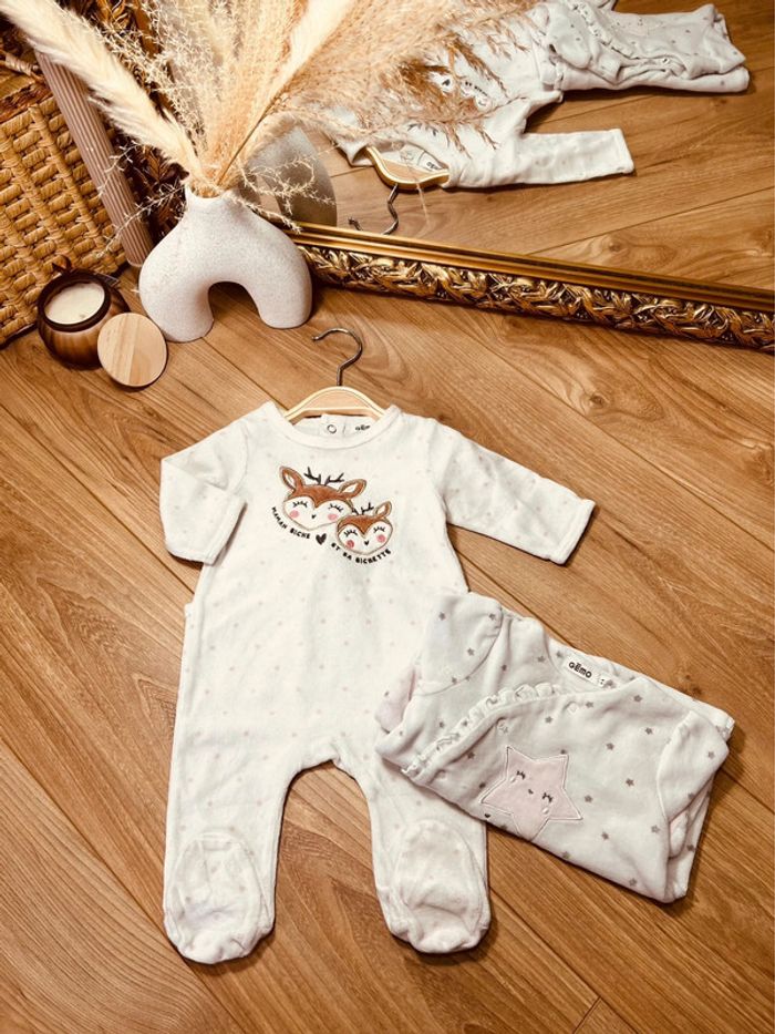 Taille 3 mois lot de 2 pyjamas velours fille Gemo blanc * biche étoile * 🎀 - photo numéro 1