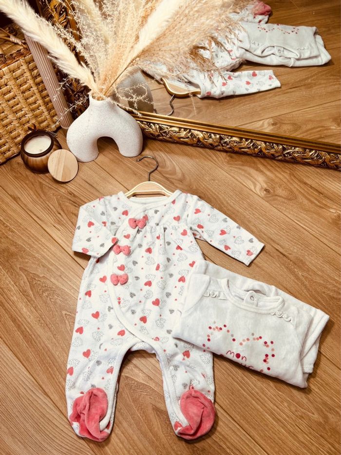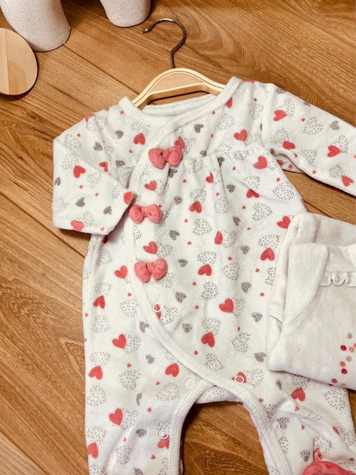 Taille 3 mois lot de 2 pyjamas velours fille Gemo blanc rose * cœurs * 🎀 - photo numéro 1
