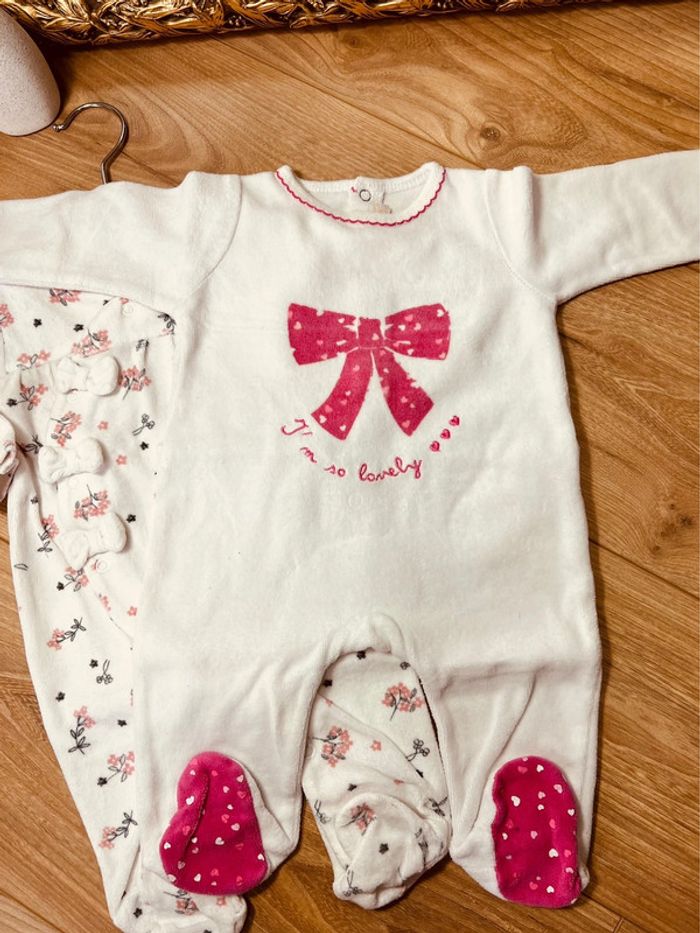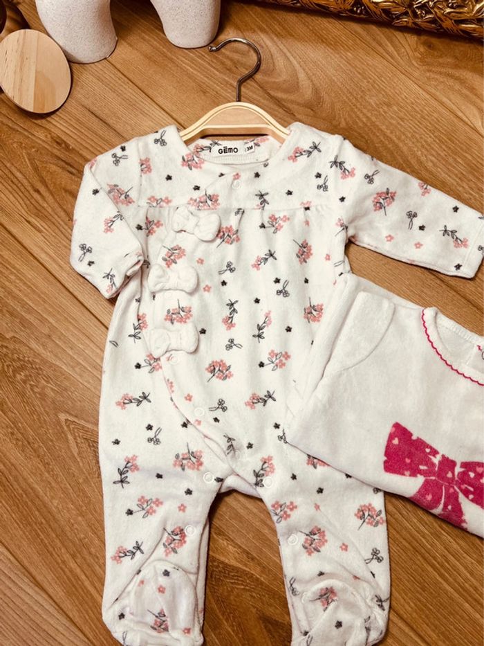 Taille 3 mois lot de 2 pyjamas velours fille Gemo blanc rose * fleurs * 🎀 - photo numéro 1