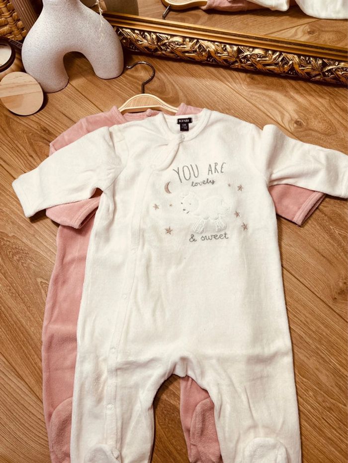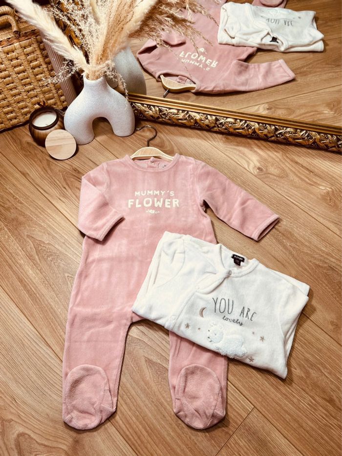Taille 12 mois lot de 2 pyjamas velours fille Kiabi écru rose * mouton flower * 🎀