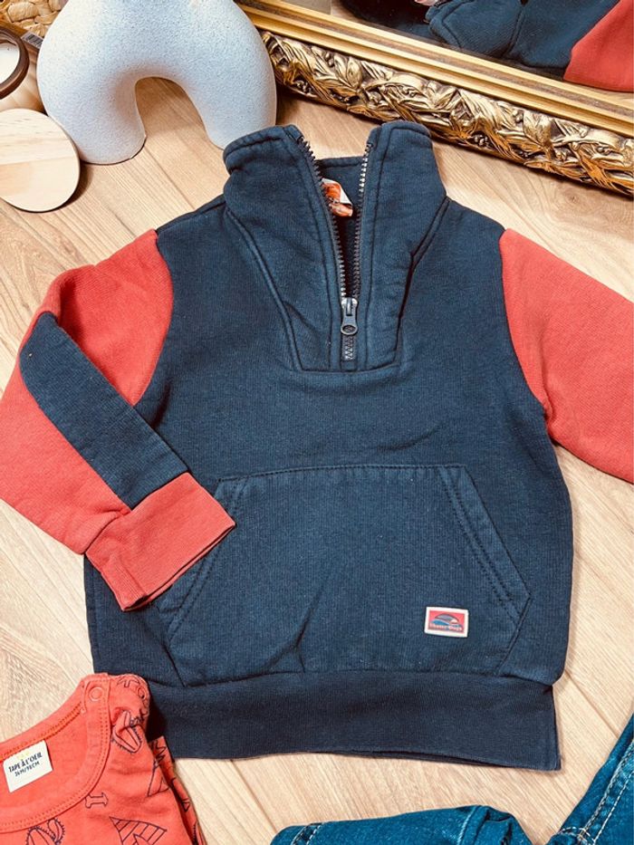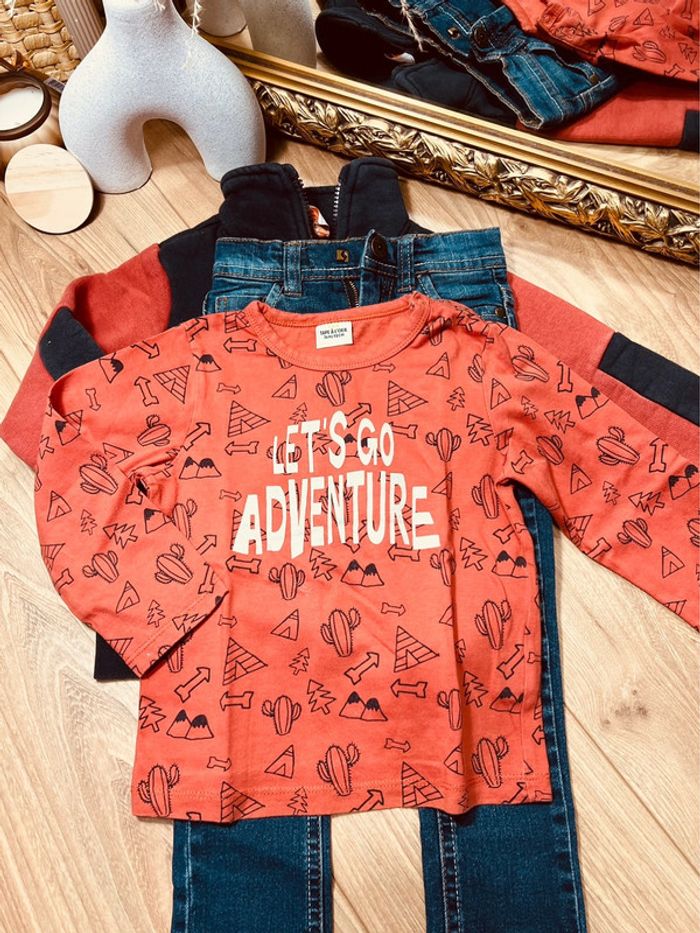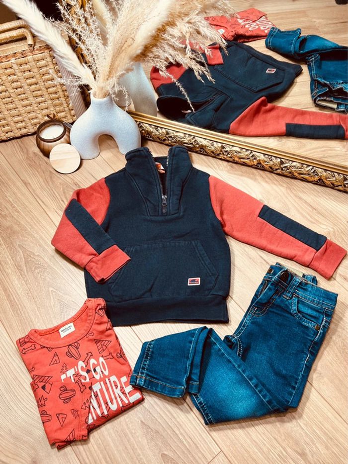 Taille 3 ans ensemble 3 pièces garçon TAO Orchestra bleu marine orange jean * adventure * 💙 - photo numéro 1