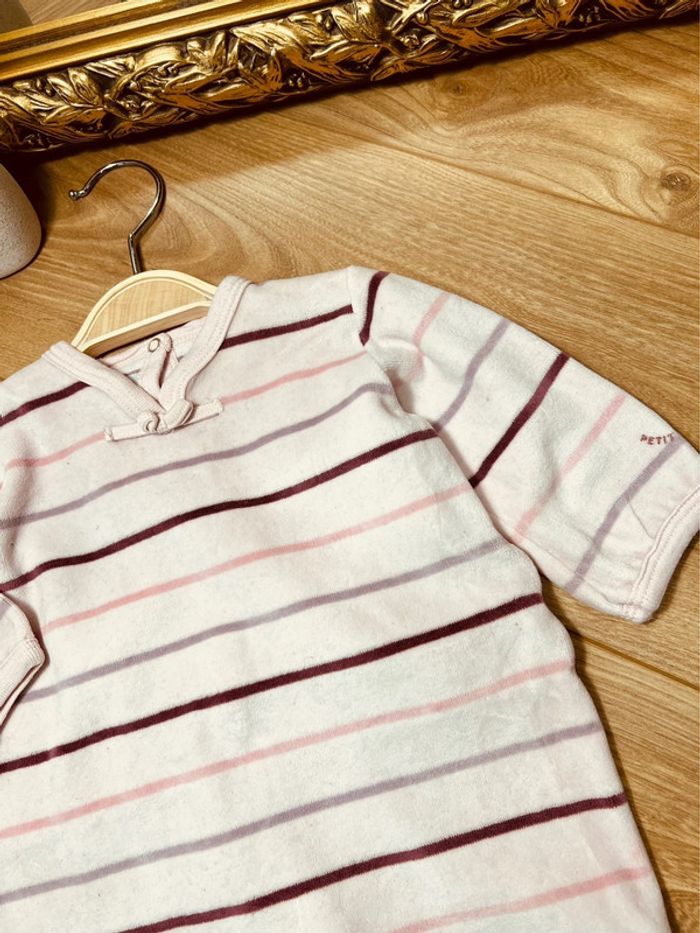 Taille 6 mois pyjama velours fille petit bateau rose pale violet * rayures * 🎀 - photo numéro 4