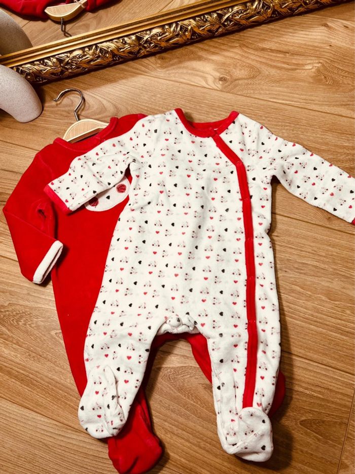 Taille 6 mois lot de 2 pyjamas velours fille orchestra blanc rouge * chat * 🎀 - photo numéro 1