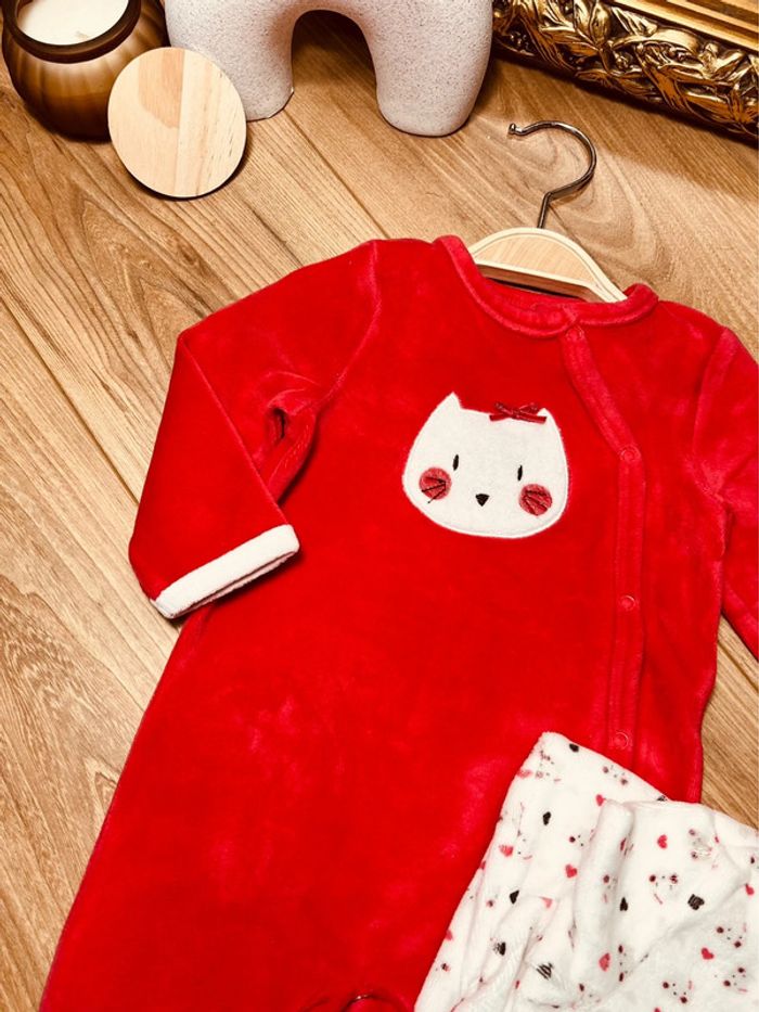 Taille 6 mois lot de 2 pyjamas velours fille orchestra blanc rouge * chat * 🎀 - photo numéro 2