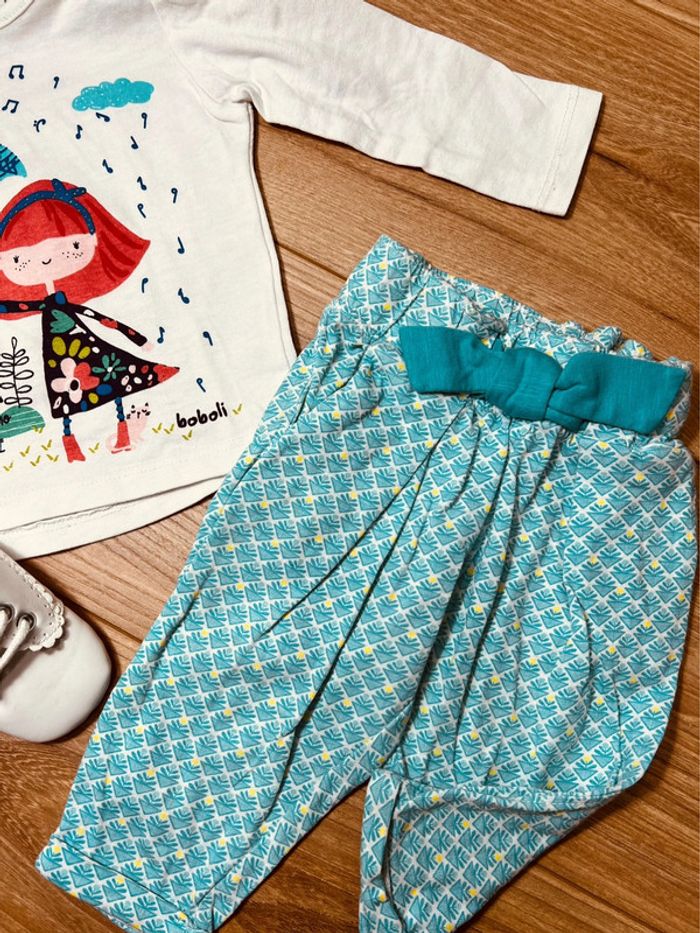 🌸 En excellent état • teeshirt à manches longues • pantalon fluide Pour voir mes autres annonces ↩️ #fille6moisharmoniedenys ✅ Dressing trié par taille avec les # dans mon À PROPOS ⚠️ les chaussures ne sont pas à vendre !