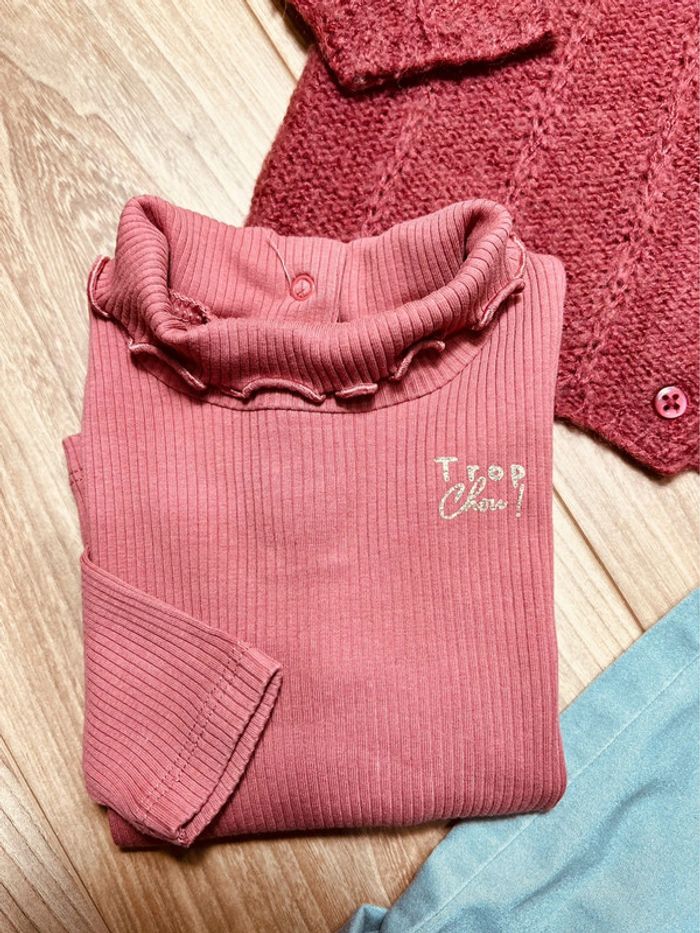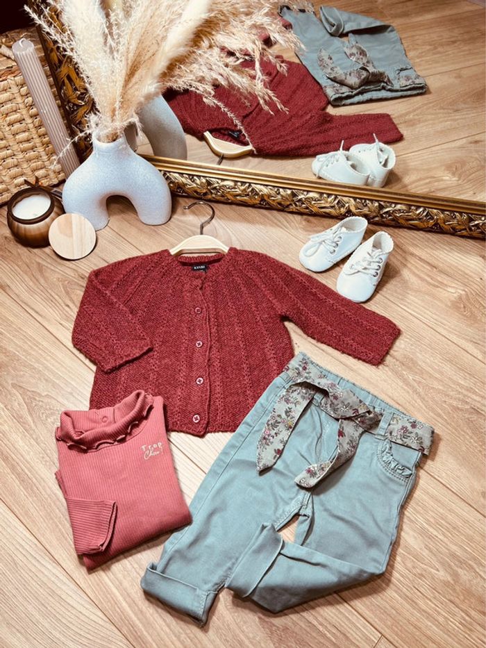🌸 En excellent état • sous pull à manches longues • gilet laine • pantalon avec ceinture fleurie Pour voir mes autres annonces ↩️ #fille6moisharmoniedenys ✅ Dressing trié par taille avec les # dans mon À PROPOS ⚠️ les chaussures ne sont pas à vendre !