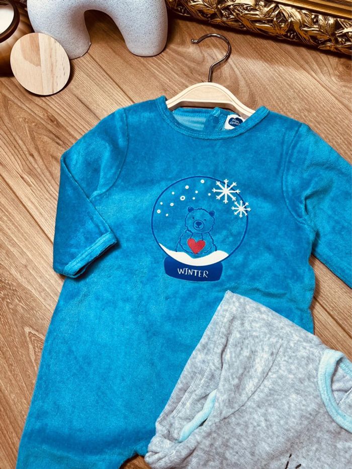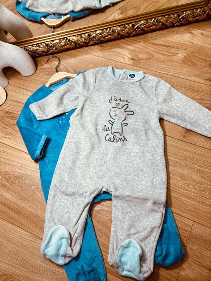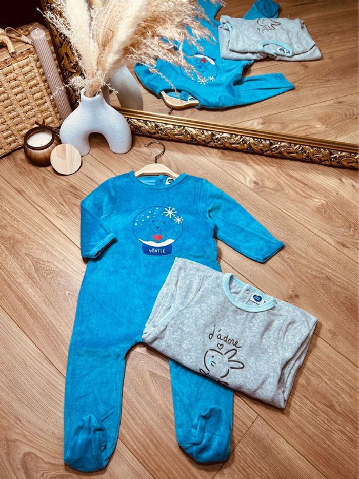 Taille 12 mois lot de 2 pyjamas velours garçon mots d’enfants gris bleu * ours lapin * 💙 - photo numéro 1