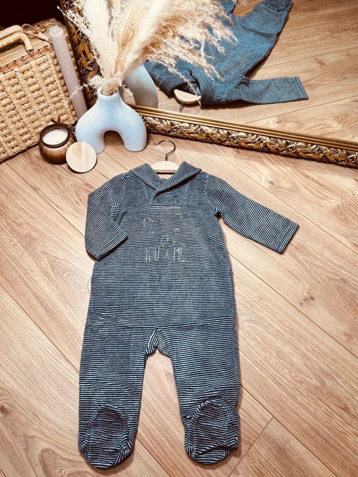 Taille 9 mois pyjama velours garçon TAO bleu marine et gris * rayures * 💙 - photo numéro 1