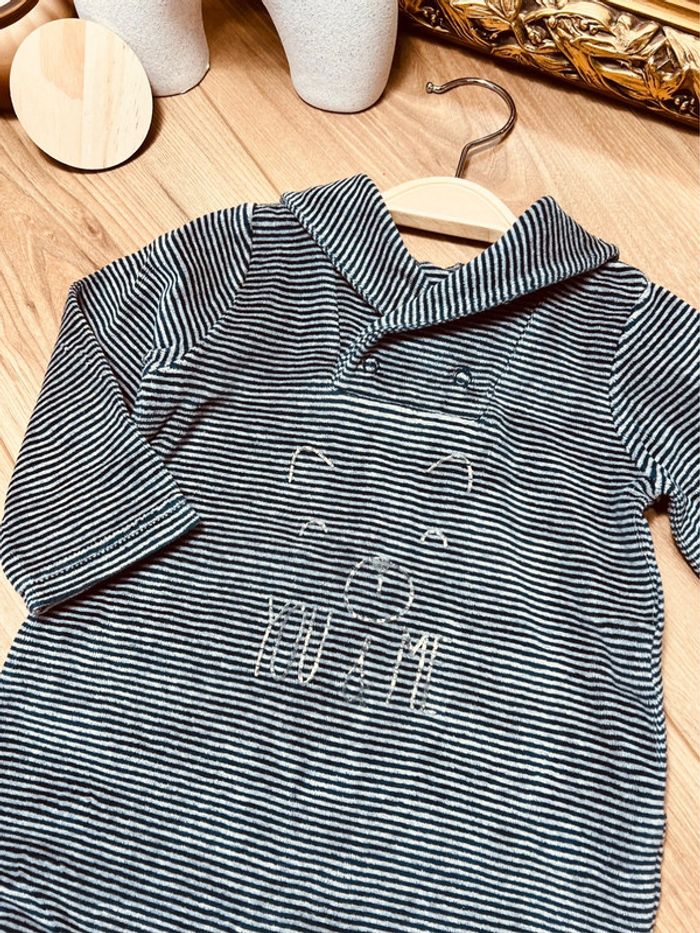 Taille 9 mois pyjama velours garçon TAO bleu marine et gris * rayures * 💙 - photo numéro 2