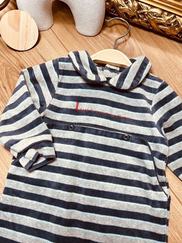 Taille 9 mois pyjama velours garçon TAO bleu gris * rayures * 💙 - photo numéro 2