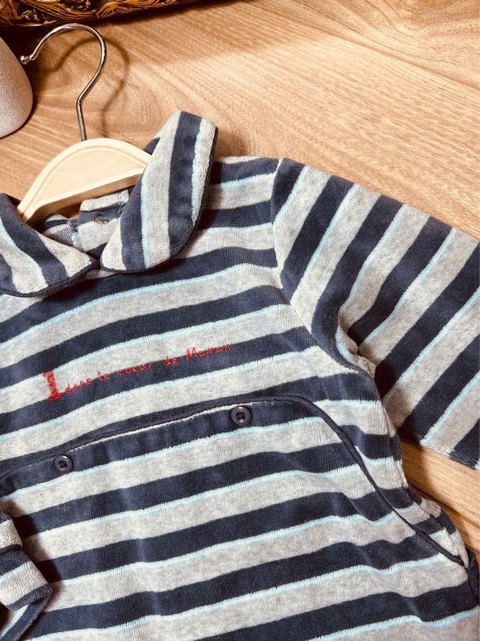 Taille 9 mois pyjama velours garçon TAO bleu gris * rayures * 💙 - photo numéro 3