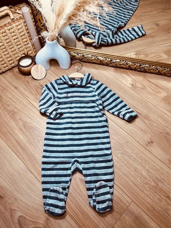 Taille 9 mois pyjama velours garçon TAO bleu gris * rayures * 💙 - photo numéro 1