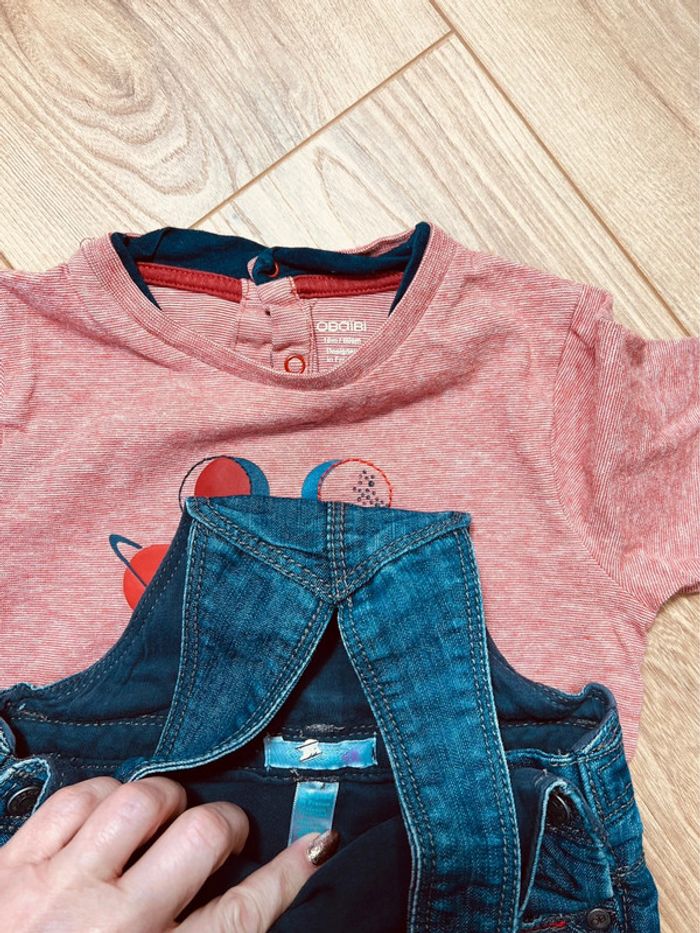 Taille 18 mois ensemble 2 pièces garçon Obaibi bleu jean rouge * planet * 💙 - photo numéro 1