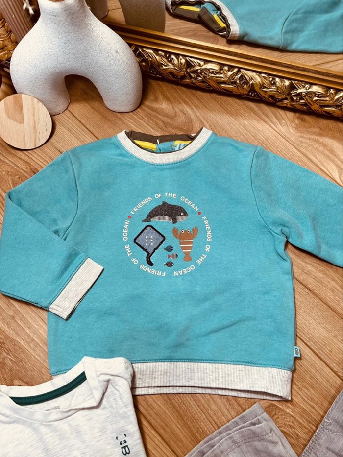 Taille 18 mois ensemble 3 pièces garçon Obaibi bleu turquoise et gris * mer * 💙 - photo numéro 2