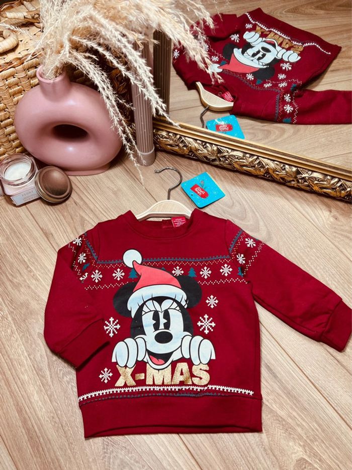 Taille 12 mois sweat-shirt de Noël fille Disney bordeaux * Minnie * 🎀 - photo numéro 1