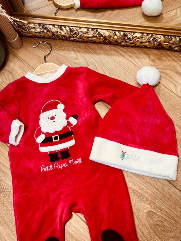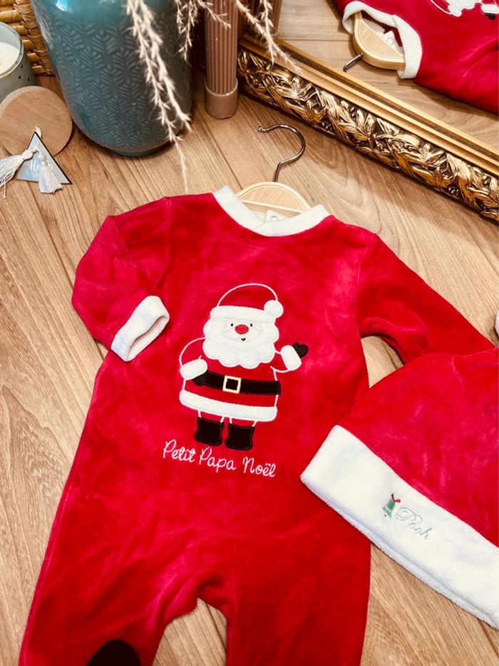 Taille 3 mois pyjama et bonnet de noël velours garçon rouge * petit papa Noël * 💙 - photo numéro 2