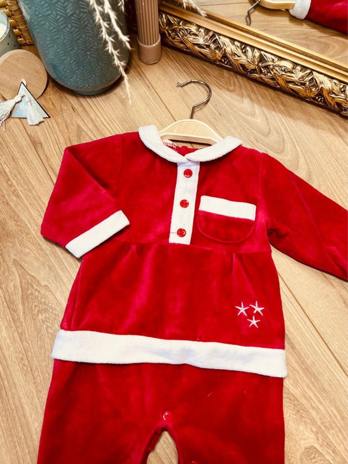 Taille 3 mois pyjama de Noël velours garçon Tissaia rouge et blanc 💙 - photo numéro 1