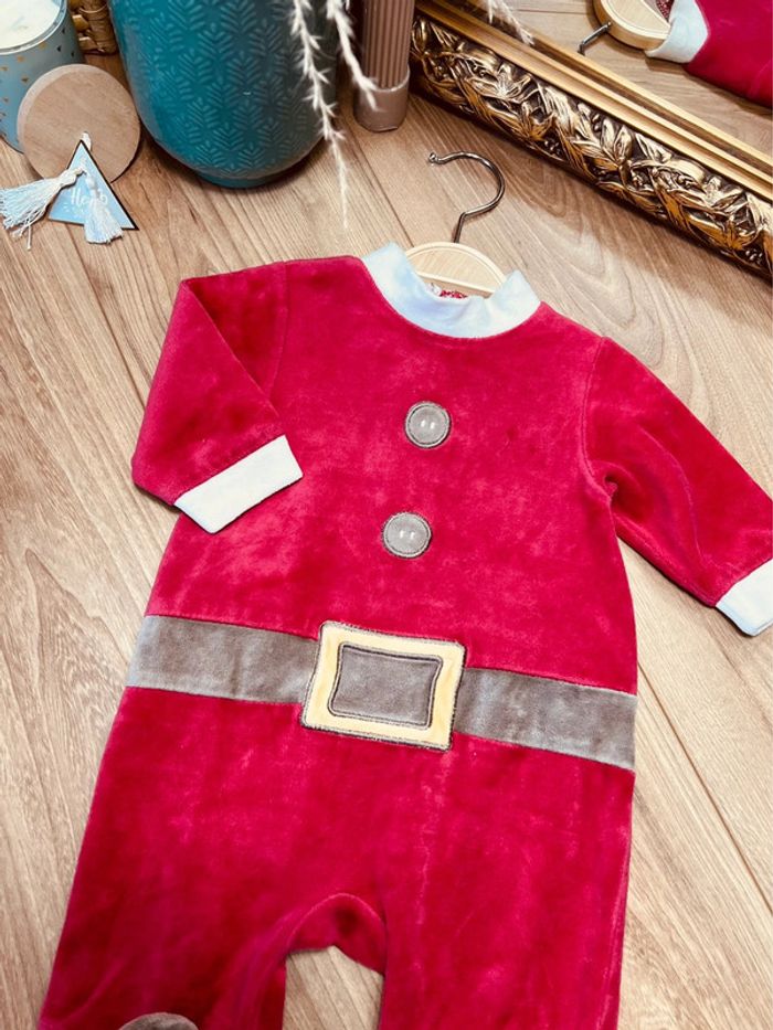 Taille 3 mois pyjama de Noël velours garçon rouge et beige 💙 - photo numéro 2