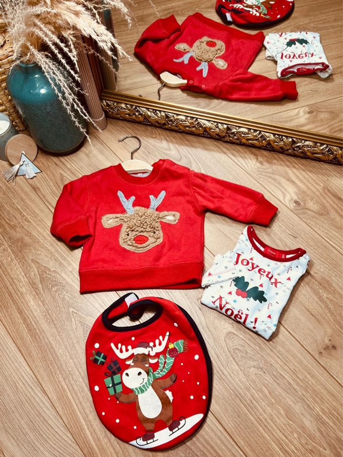 Taille 6 mois teeshirt pull bavoir de noël garçon blanc et rouge 💙
