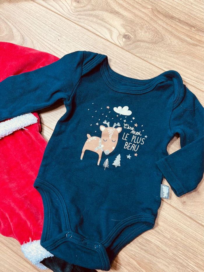 Taille 3 mois pyjama et body de Noël velours garçon orchestra rouge bleu marine 💙 - photo numéro 2