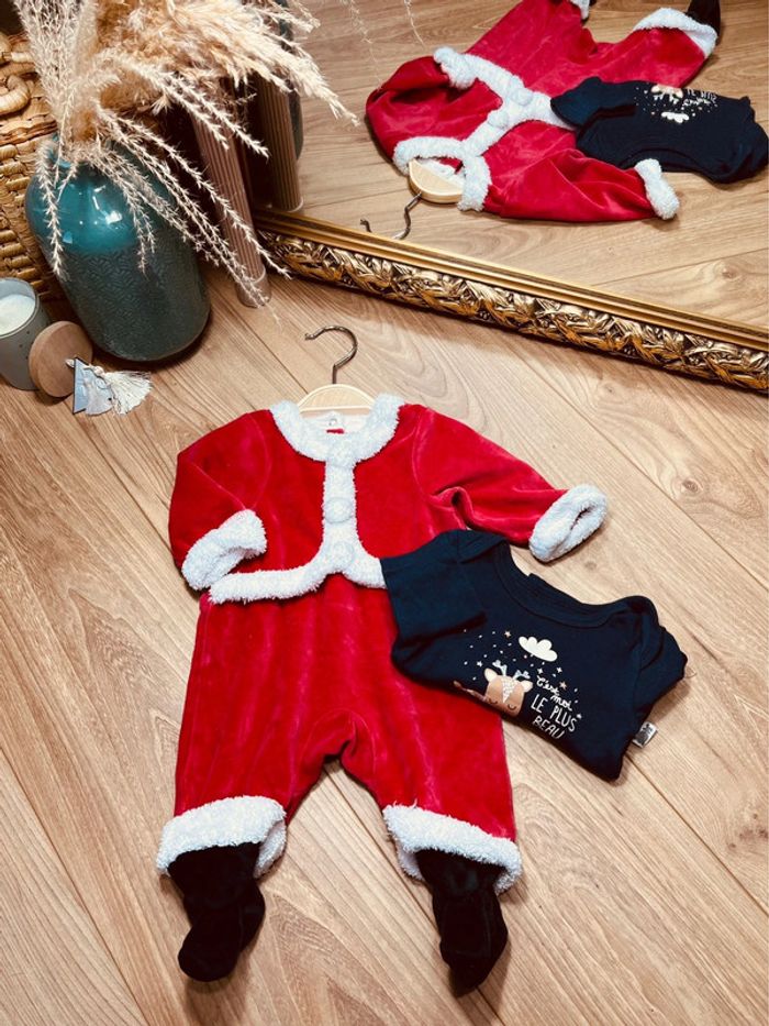 Taille 3 mois pyjama et body de Noël velours garçon orchestra rouge bleu marine 💙 - photo numéro 1