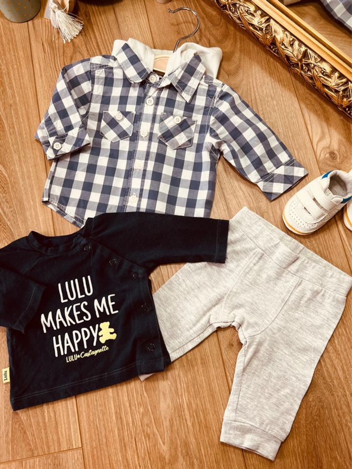 💙 En excellent état Pour voir mes autres annonces ↩️ #garçon1moisharmoniedenys ✅ Dressing trié par taille avec les # dans mon À PROPOS ⚠️ chaussures vendues séparément ! Teeshirt manches longues + chemise + pantalon type legging Lulu castagnette, Kiabi , orchestra