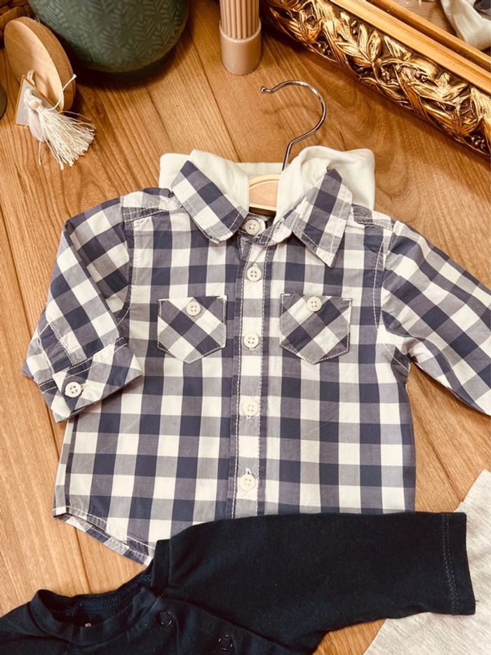 Taille 1 mois ensemble 3 pièces garçon multimarques bleu gris * carreaux * 💙 - photo numéro 1