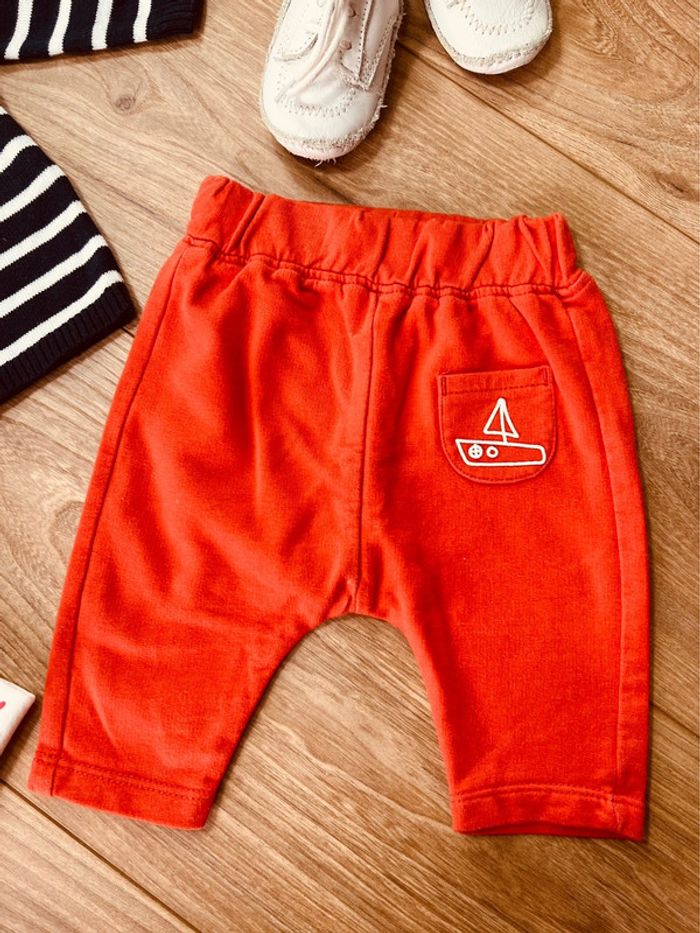 Taille 1 mois ensemble 3 pièces garçon Kiabi bleu marine blanc et orange * maman * 💙 - photo numéro 2