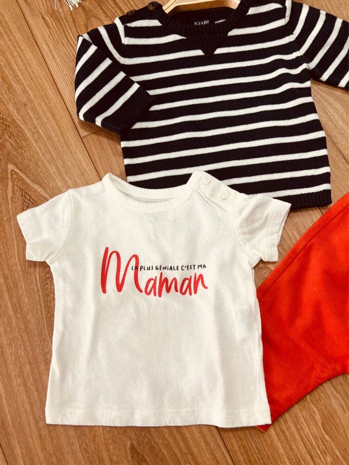💙 En excellent état Pour voir mes autres annonces ↩️ #garçon1moisharmoniedenys ✅ Dressing trié par taille avec les # dans mon À PROPOS ⚠️ chaussures vendues séparément ! Teeshirt manches courtes + pull + pantalon
