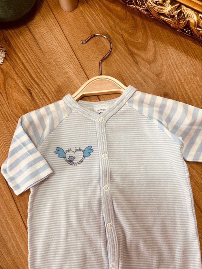 Taille 1 mois pyjama d’été garçon Petit Bateau bleu ciel et Blanc * rayures * 💙 - photo numéro 1