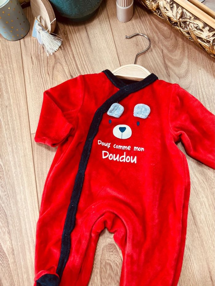 Taille 1 mois pyjama velours garçon orchestra rouge * doudou * 💙 - photo numéro 1