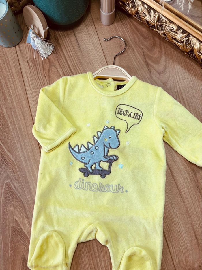 Taille 1 mois pyjama velours garçon Kiabi jaune * dinosaure * 💙 - photo numéro 3