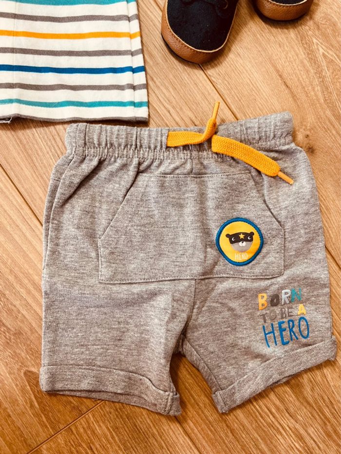 Taille 6 mois ensemble 2 pièces d’été garçon orchestra gris bleu moutarde * ours rayures * 💙 - photo numéro 3