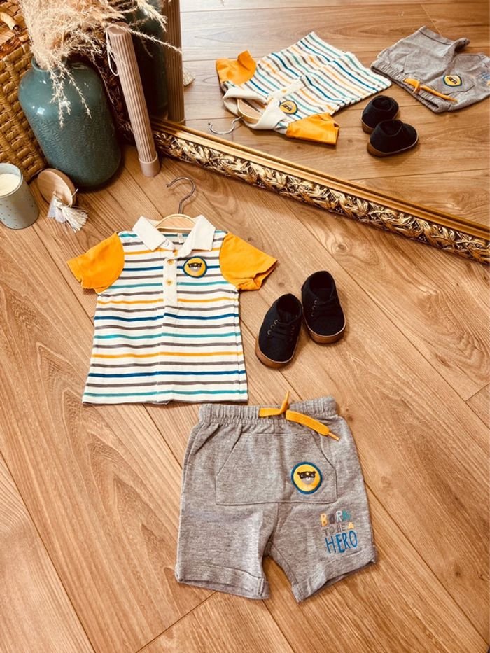 💙 En excellent état Pour voir mes autres annonces ↩️ #garçon6moisharmoniedenys ✅ Dressing trié par taille avec les # dans mon À PROPOS ⚠️ chaussures vendues séparément ! Polo manches courtes + short