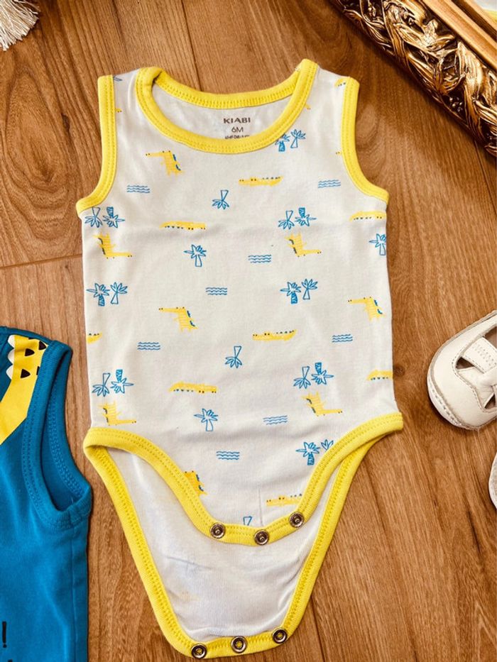 Taille 6 mois lot de 2 bodies sans manches garçon Kiabi blanc bleu vert * crocodile * 💙 - photo numéro 1