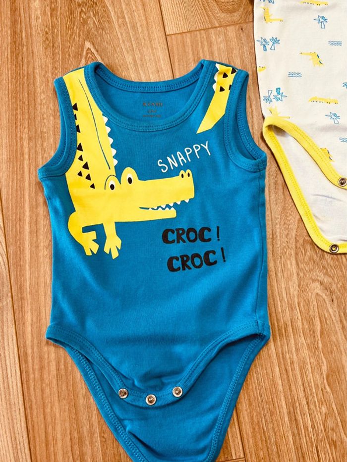 Taille 6 mois lot de 2 bodies sans manches garçon Kiabi blanc bleu vert * crocodile * 💙 - photo numéro 3
