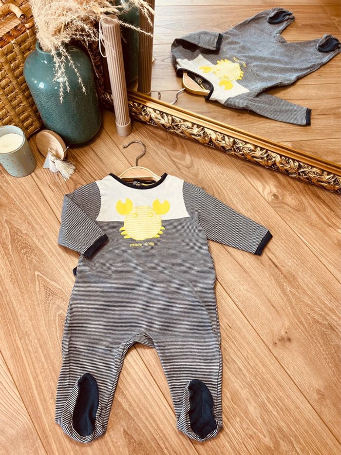 Taille 6 mois pyjama d’été garçon Obaibi bleu marine blanc et jaune * crabe * 💙 - photo numéro 1