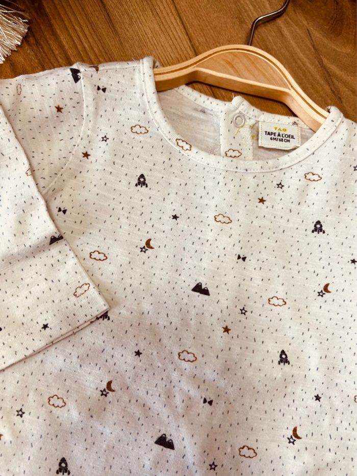 Taille 6 mois pyjama d’été garçon TAO blanc bleu marron * nuage montagne * 💙 - photo numéro 2