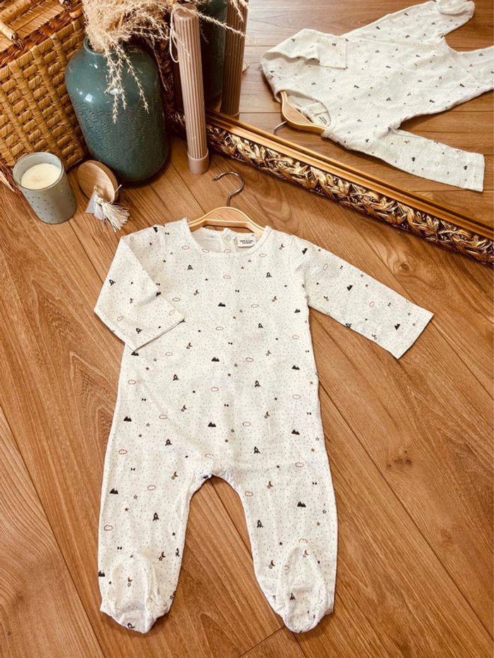 Taille 6 mois pyjama d’été garçon TAO blanc bleu marron * nuage montagne * 💙 - photo numéro 1