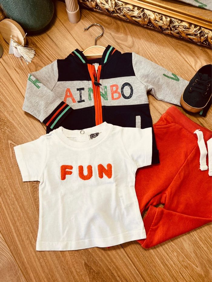 Teeshirt manches courtes + sweat-shirt + pantalon